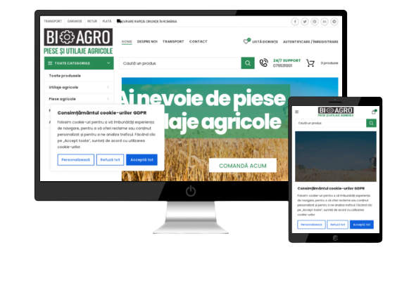 Oferim soluții pentru crearea de site-uri web de prezentare, magazine online, platforme complexe și soluții personalizate. Se adaptează rapid la cerințele proiectului și utilizează tehnologie de ultimă generație